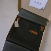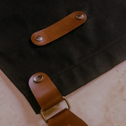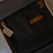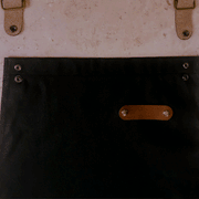 • Lona negra y cuero color Habana 100% natural, con un ligero brillo que lo hace único.